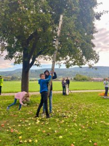 Mit viel Einsatz und Begeisterung füllten die Schülerinnen und Schüler an beiden Tagen Dutzende Säcke mit reifen Früchten – ein schönes Gemeinschaftserlebnis zwischen buntem Laub und goldenem Herbstsonnenschein.
