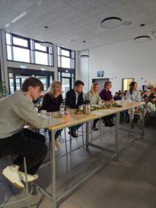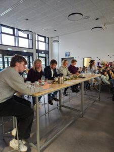 Auch außerhalb des Schulgebäudes wurde auf hohem Niveau gearbeitet. Felicia, Kimberly, Simon und Dustin präsentierten ihr Projekt zur Automobiltechnik damals und heute direkt im Autohaus Krah & Enders in Eschwege. Dort erklärten sie, wie sich Fahrzeuge im Laufe der Zeit verändert haben und welchen Einfluss das auf die Fahrsicherheit hat 🚗. Dazu kamen weitere Projekte aus dem Jahrgang zu Themen wie Sport und Ernährung, Drogenprävention und Fahrzeugsicherheit. Alle Gruppen traten strukturiert auf, erklärten verständlich und arbeiteten mit einem klaren Praxisbezug. So sieht projektorientiertes Lernen aus: lebendig, realistisch und selbstbewusst.